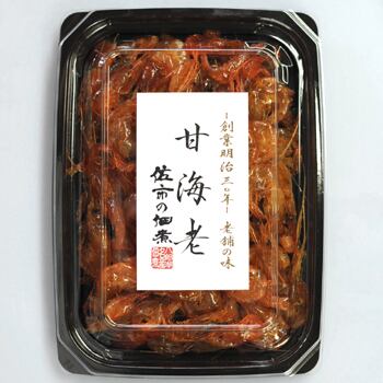 原材料名:川えび(国産)、砂糖、本みりん、酢、食塩/着色料(紅麹色素)、調味料(アミノ酸等)、(一部にえび・小麦を含む)