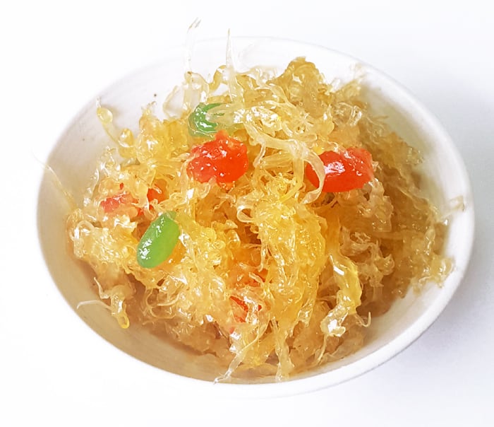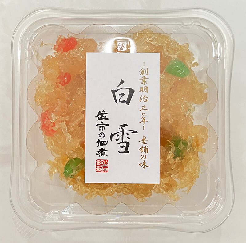 原材料名:切いか(国内製造)、水飴、砂糖、大手亡豆、食塩、寒天/保存料(ソルビン酸K)、着色料(赤102、葉4、青1)、調味料(アミノ酸)、pH調整剤