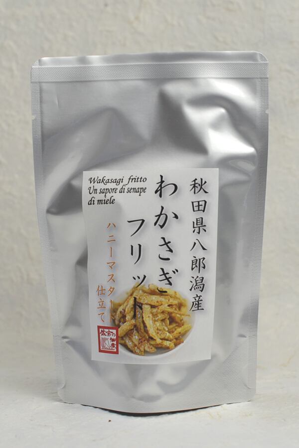 原材料名:わかさぎ(秋田県八郎潟産)、蜂蜜、マスタード、小麦粉、醤油、オニオン/調味料(アミノ酸等)、香辛料抽出物、(一部に小麦・大豆・豚肉・りんごを含む)