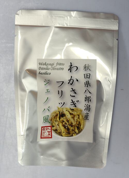 原材料名:わかさぎ(秋田県八郎潟産)、食用なたね油、小麦粉、食用オリーブ油、バジル、食塩、ガーリック、(一部に小麦を含む)